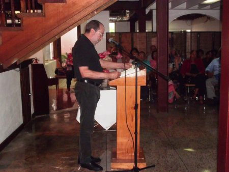 Historian Angelo Bissessarsingh gestures animatedly while regaling the audience with tales from one of his cemetery jaunts!